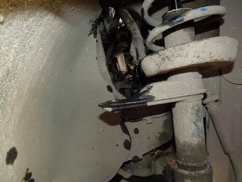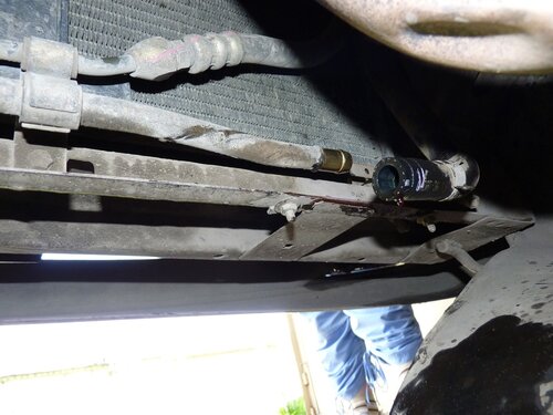 Вывернул два болта и открутил две гайки крепления рейки к кузову, для этого использовал ключ-трубку(торцевой) на 12, потому, что головкой неудобно, она не налезает на гайку(не позволяет длина шпильки). Вынимал рейку через проем в правой колесной арке, но для этого пришлось снять рулевую тягку полностью(с рулевым наконечником).