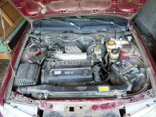 далее, для удобства, я открутил расширительный бачок охлаждающей жидкости(1) и какой-то аппендикс на воздухозаборнике(1).