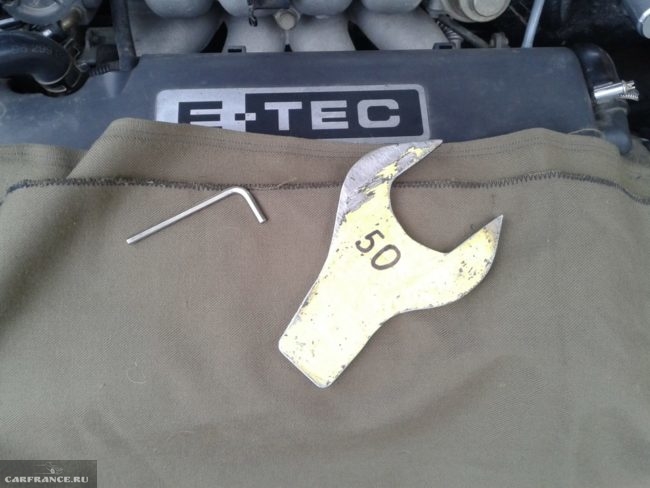 Для удобства подтяжки некоторые умельцы мастерят вот такой короткий ключ на 50, но проблема в том, что на старых Нексиях контргайка часто бывает сбитая и ключ проворачивается.