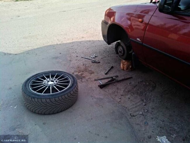 - Для проведения данной манипуляции вам понадобится гаражная яма, а если ее нет, тогда воспользуйтесь домкратом.