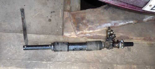 Открутил болт на крестовинке рулевого вала(дальний, тот который на валу вала-шестерни), ВНИМАНИЕ его надо выкрутить полностью, иначе вал из крестовинки не выйдет.