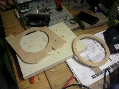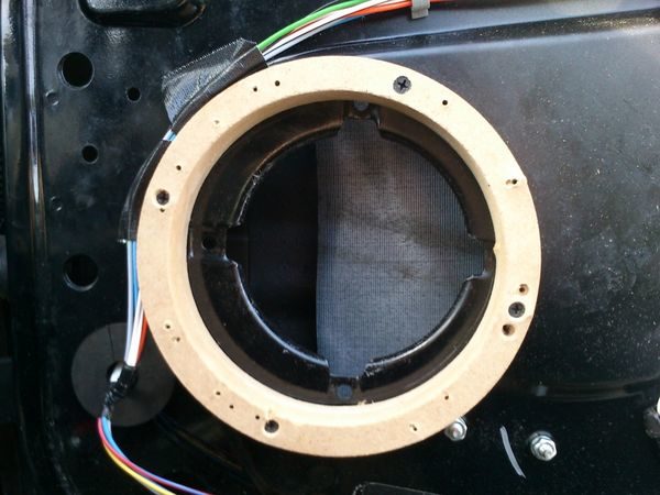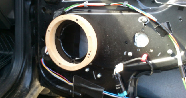 По этой причине изготовленные из фанеры кольца под динамики крепят на металл двери, и уже к ним саму колонку.