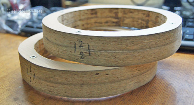 Проставка — в данном случае изделие из дерева, которое по форме повторяет форму колонки. Изготавливается в виде кольца, материал исполнения обычно ДВП, МДФ-плита или фанера. Но даже в этом случае может потребоваться резать металл двери, что на мой взгляд немного кощунственно по отношению к автомобилю.